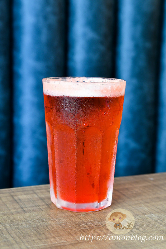 用bar加上石榴汁和檸檬汁調製而成的啤酒,顏色跟比柯夢波丹再深紅一些,喝起來有淡淡啤酒味,比較適合對酒精接受較低的人XD。