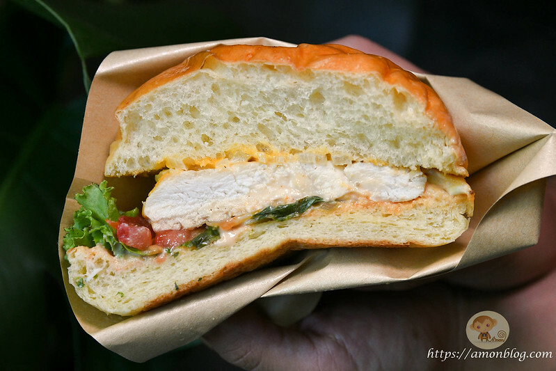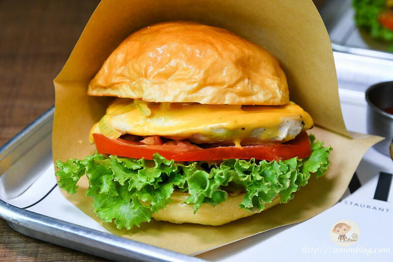 如果是不吃牛的客人,菜單上也有嫩煎雞肉堡和黃金排骨堡可選,所以這次也點了一份嫩煎雞肉堡來吃看看,嫩煎雞肉堡用的是雞胸肉的部位,搭配生菜、洋蔥、起士等配料,口感還蠻嫩口且不乾柴,出乎意料的好吃,所以不吃牛的朋友也可以吃看看這個喔。