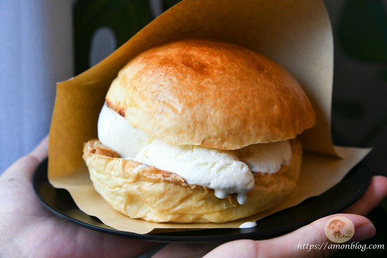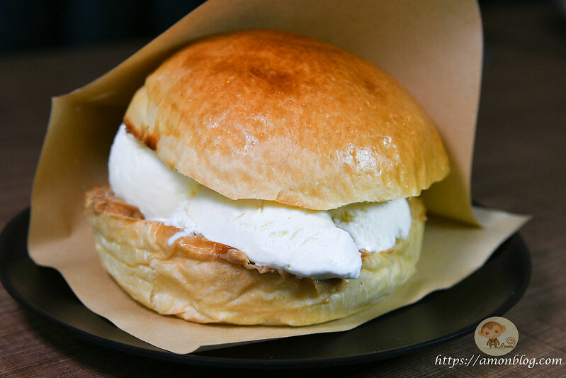 因為很少看到有甜食漢堡,所以就有點一個來嚐鮮看看,共有花生醬和巧克力醬兩種口味,說不定之後還會有更多種口味?跟前麵兩個漢堡差異在麵包內包的是冰淇淋和花生醬,吃起來甜鹹甜鹹的,出乎意料的好吃XDD,但因為是包冰淇淋,所以融化有點快,一定要快速吃掉喔。