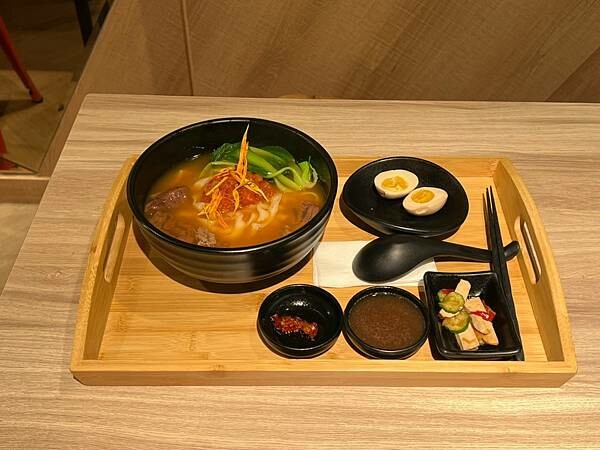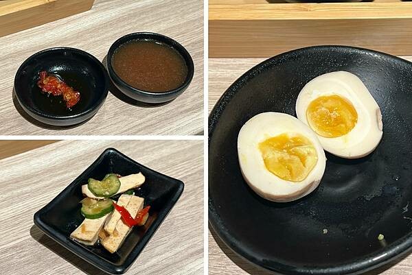 隨餐附上濃郁的番茄湯頭及辣椒,還有豆干小菜,我額外單點的糖心蛋就略顯普通,整體來說鰻好吃衛生環境也很不錯