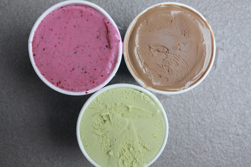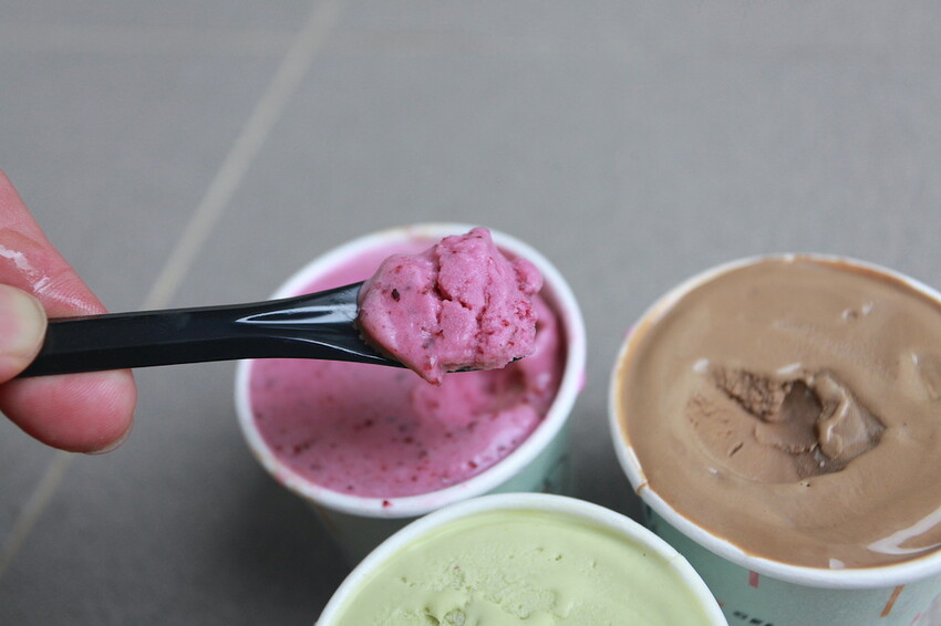 冷凍櫃裡20幾種口味冰淇淋供挑選,冰淇淋有清夏18號奶茶、芭樂鳳梨、鹿耳島焙茶、紅茶鐵觀音、火龍果、愛文芒果、牛奶之花、蘋果玫瑰、招牌開心果、藍莓優格、百香果、經典巧克力、巨峰葡萄、榛果巧克力金沙、威士起奶酒、薄荷巧克力脆片、無糖馬士卡邦...等等。