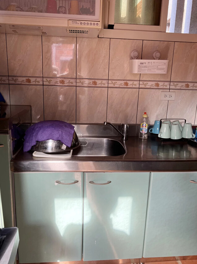 公共空間除了天井外也備有廚房,雖然沒有瓦斯爐但有提供電磁爐、飲水機跟洗衣機。