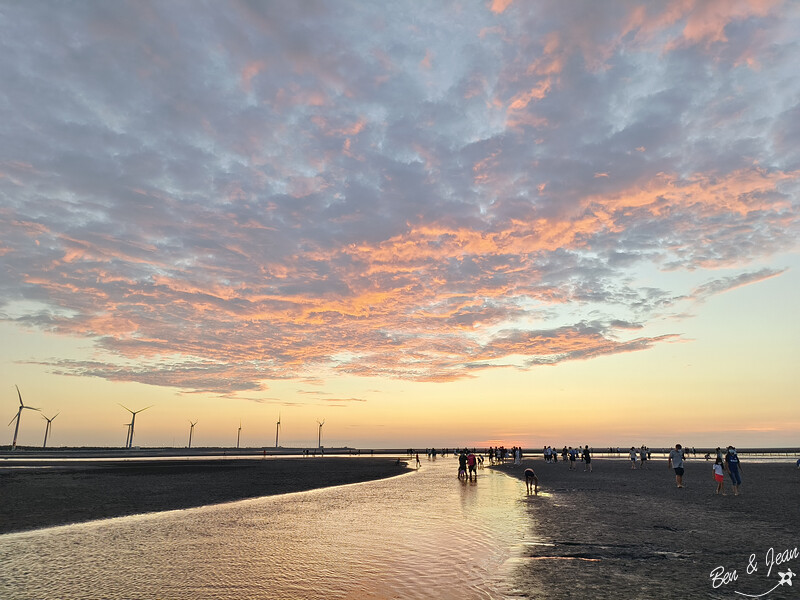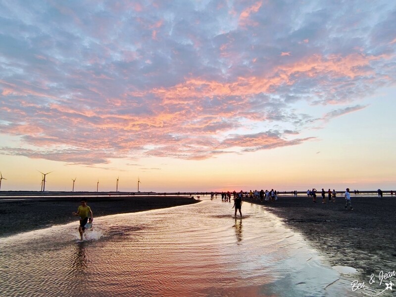 台中的高美溼地可是台中海線必玩的浪漫景點!!! 也曾被國外網站評為「一生至少必遊一次絕景」。我們已經多年沒來了,現在多了木棧道,來往更方便。而且還可以走下棧道踏軟綿綿的沙灘。夕陽西下是最美的時刻,千變萬化的夕陽,將高美濕地點綴得更加浪漫。好多人也都是選這時段前來,海風輕拂,涼爽怡人,超棒的