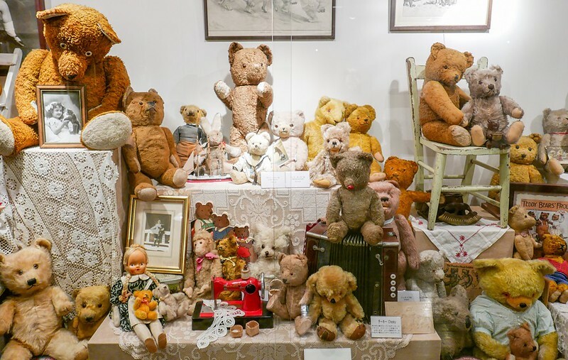 這裡的泰迪熊多數存放在大大小小的玻璃櫃中,當然是可以拍攝的,裡面比較珍貴的泰迪熊都有年份、故事,甚至是專屬的姓名。下面,就透過小虎的照片,用看的比較快。