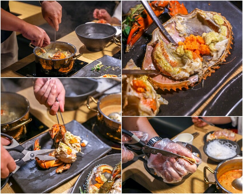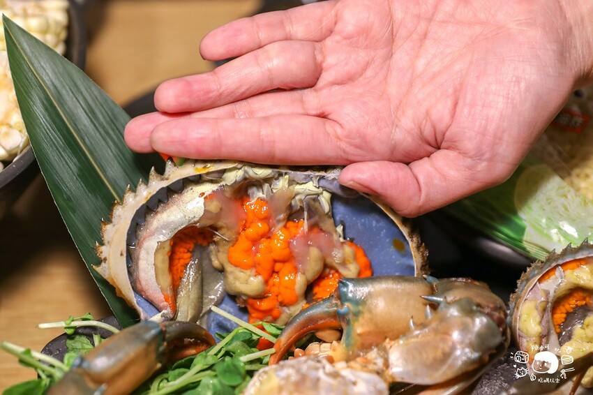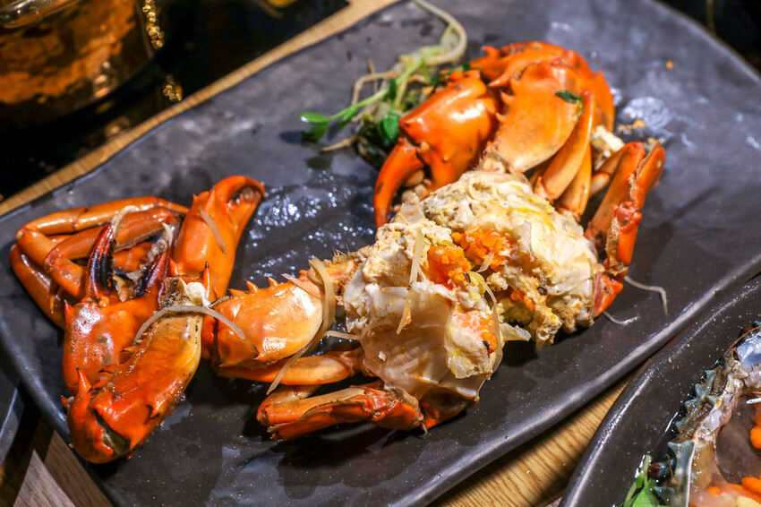 一開始就是被這擺滿海鮮的大木盤吸引,本來想點雙人蟹膏雜炊,不過這是剛好有活動「爆膏粉蟳買一送一」,可以單點吃更多超滿足。