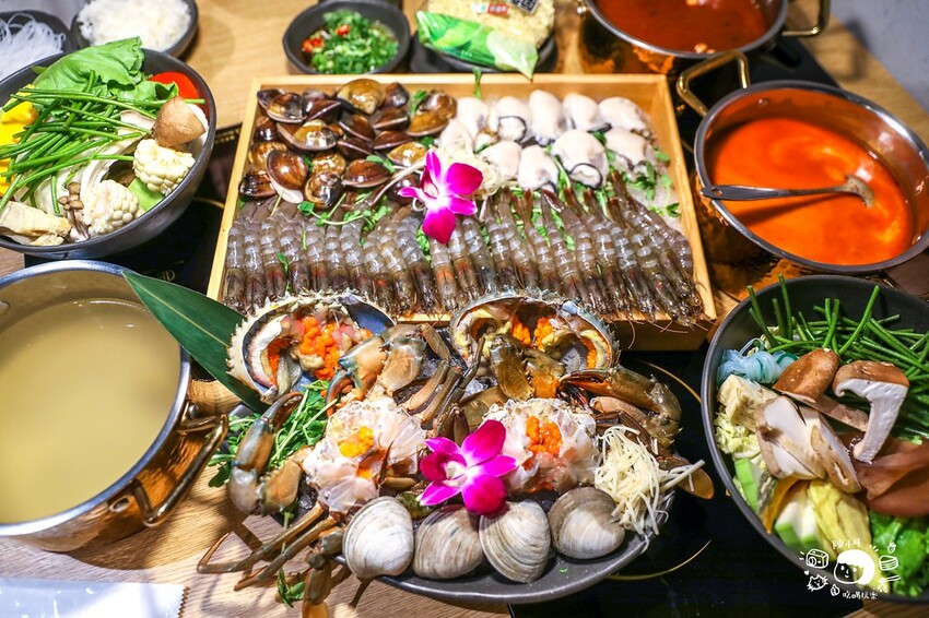 湯底有六種選擇,點鍋物就可享有30種蔬菜火鍋料、飲料和霜淇淋自助吧吃到飽,開鍋就送牛肉或豬肉擇一,菜單有照片參考很不錯,最多人推薦的就是雙人海陸,除了擺盤吸睛也能同時吃到海鮮和肉片。