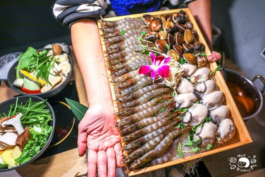 有小肥牛、梅花豬、鮮甜白蝦、蛤蠣和日本廣島大牡蠣