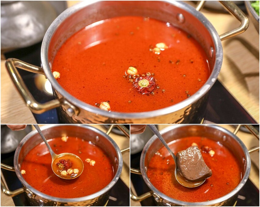 中藥材熬製,麻辣溫順辛香,可以喝的麻辣湯,裡面還有入味Q彈的鴨血。