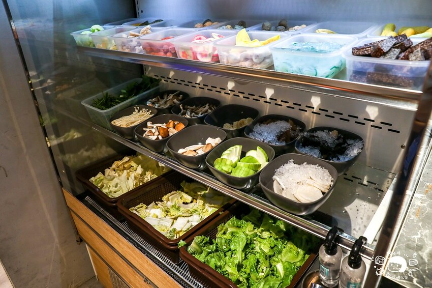 依照季節更換食材的自助區提供30種蔬菜火鍋料,好幾種價位高的丸子也能吃到,像是我很愛的芋頭貢丸,連水果玉米和腐皮都有,看到很開心咧~