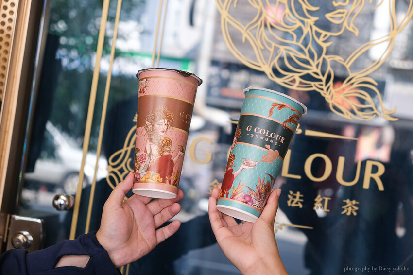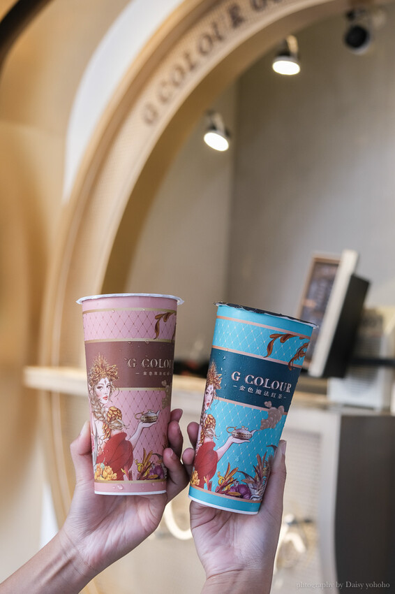 這天黛西來報到的是位在一中街附近的G Colour 金色魔法紅茶,如同店名,店面的金色裝潢設計,拱形的線條、如神話般女神的LOGO,讓人經過都不禁被這美美的店面給吸引。