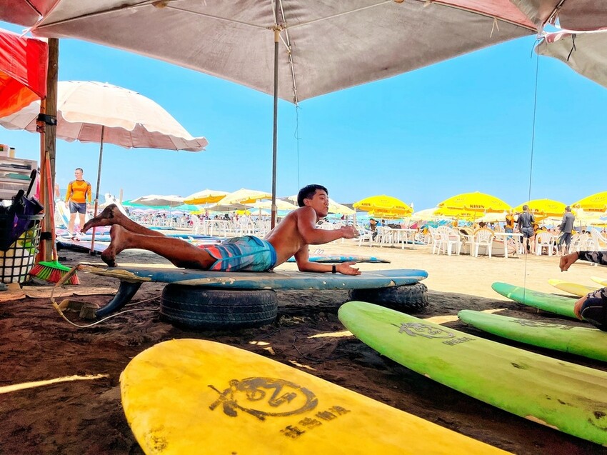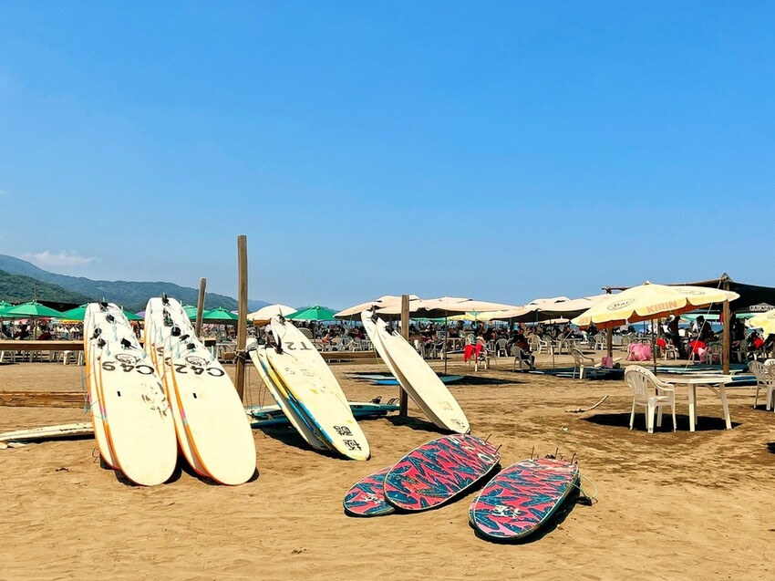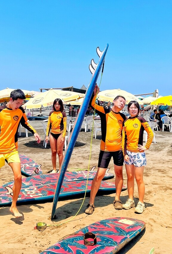 「極酷衝浪俱樂部」在入口處前的沙灘上很容易找,我也有看到一些人是從衝浪街的極酷抱著衝浪板而來,有經驗的姪子帶領果然不用多走路與盡勞力XD!