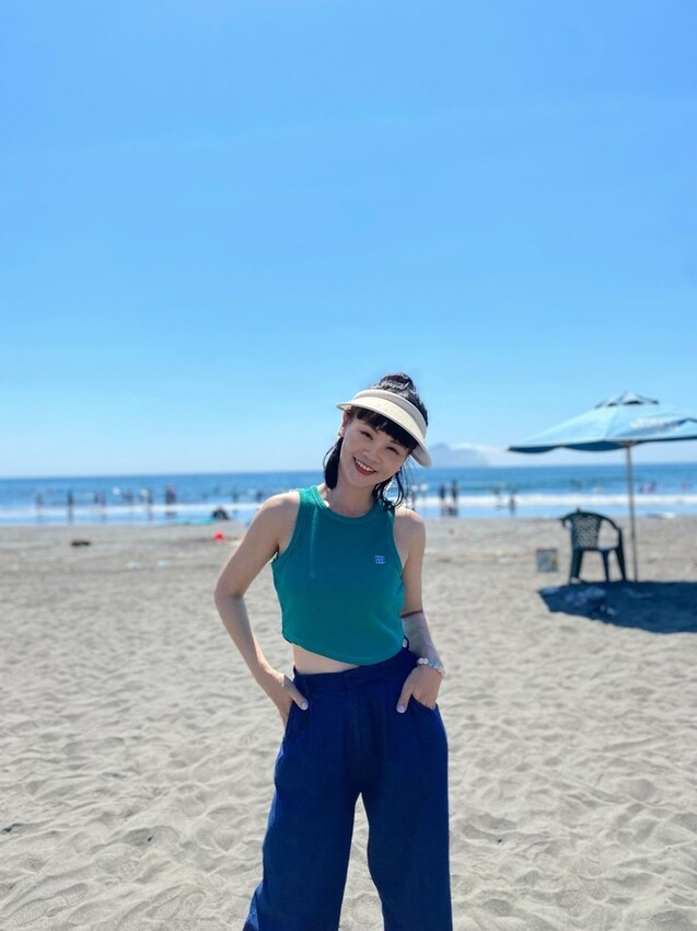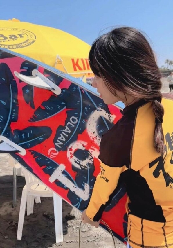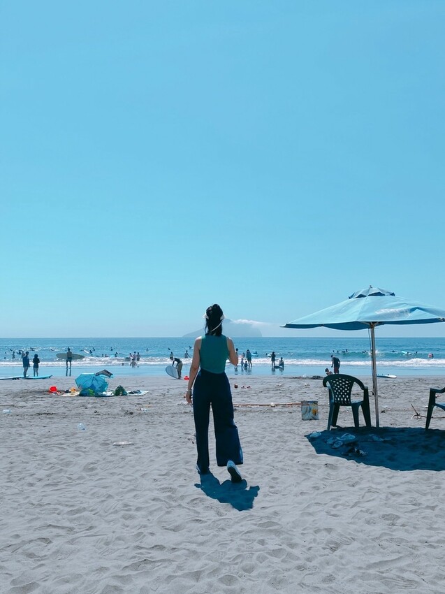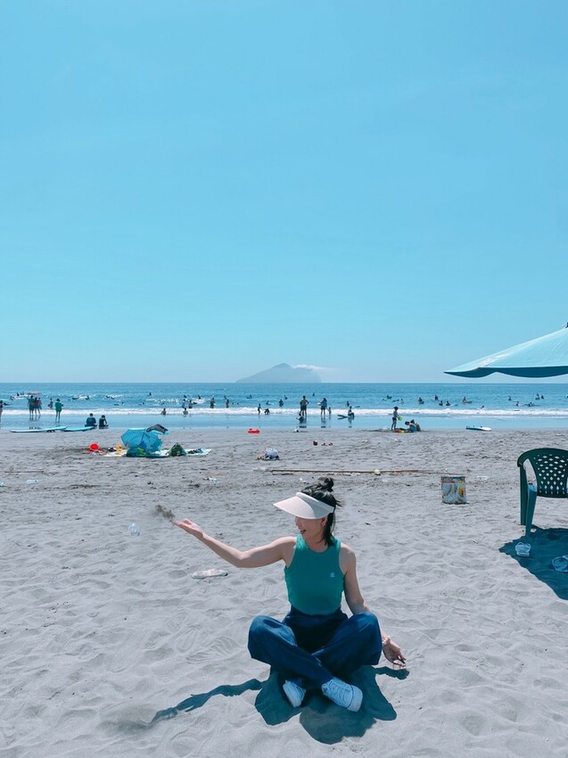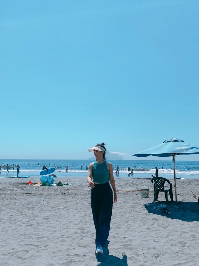 雖然一直嚷嚷著解鎖衝浪,但到達目的地姪女看著我說,妳怎麼看起來不開心XD,其實,當下心情很複雜耶~因為我有點緊張加上又好熱,怕海又愛玩的我不知為什麼揪著一顆心~哈!