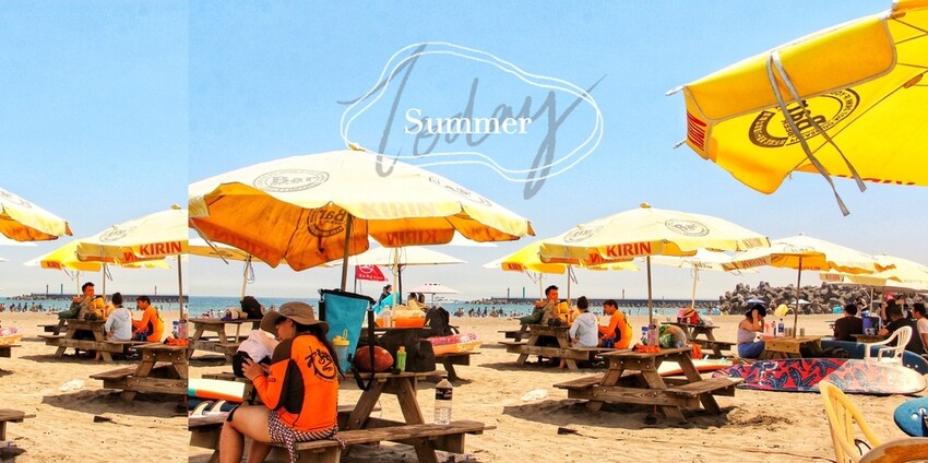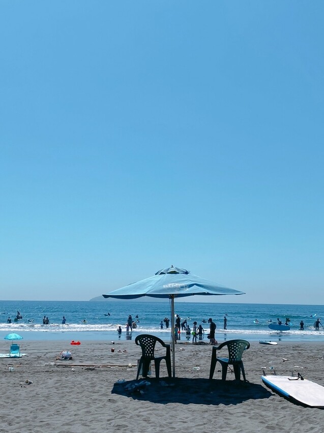 沙灘上的洋傘,只要有空位就可以入坐的喔!即便沒衝浪也可以使用。