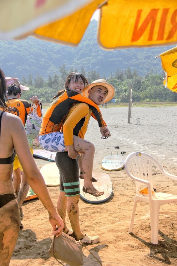 衝浪過程中,你會體驗到各種摔也是挺好玩的,重點是我還笑的出來也是絕,也因為人多就不感覺到海的可怕。