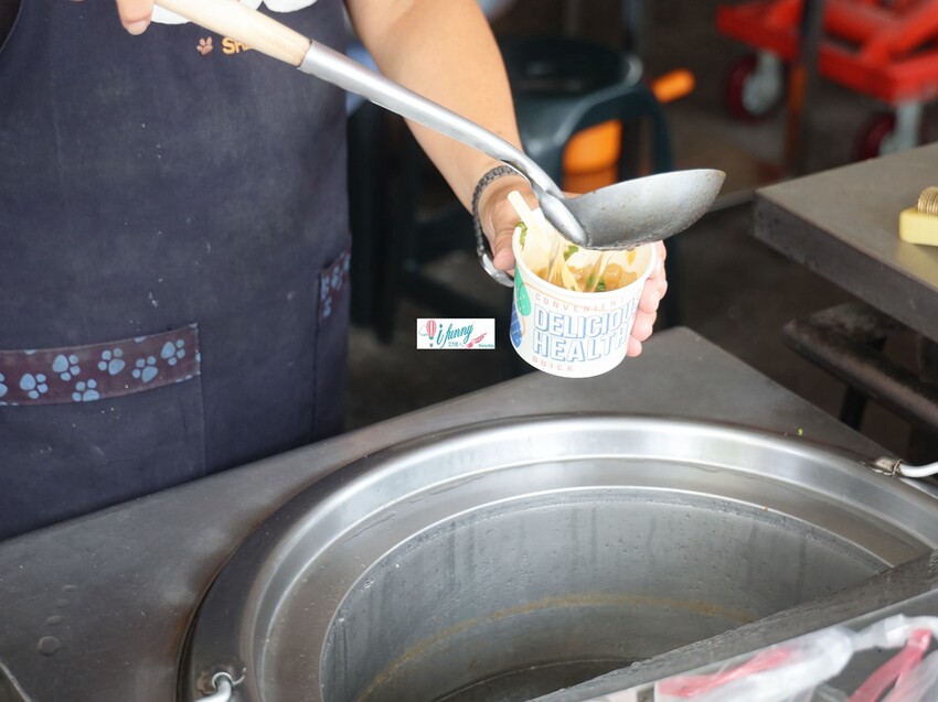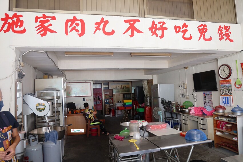 這天來到店家自稱不好吃免錢的施家肉丸,店門前擺著料理的攤車,裡面是座位區,但因為疫情,暫時沒有開放內用。