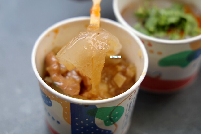 雖然的外皮略有厚度,但晶瑩剔透的外表,入口吃來是軟中帶Q的口感。當下,好友們竟對此肉丸的評價高於水里的三兄弟肉圓。