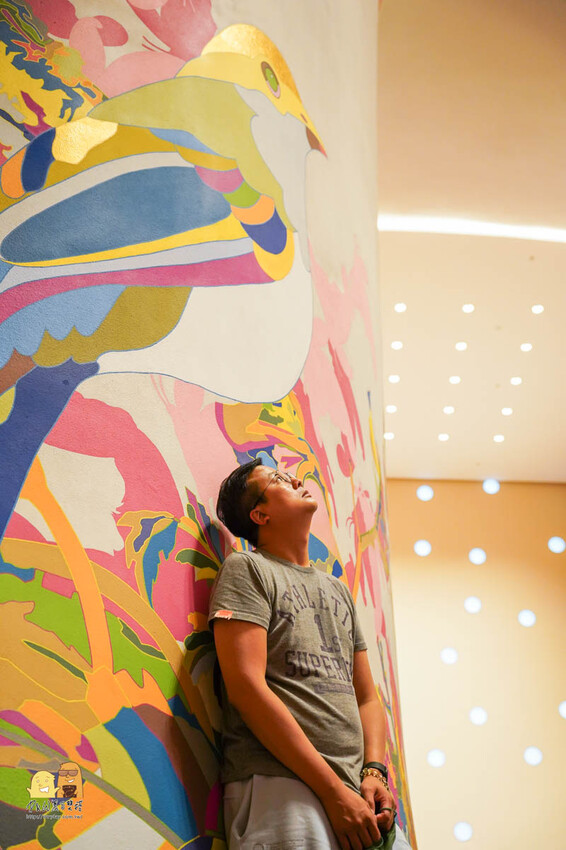 有一面很漂亮的牆,上面有花跟鳥~很適合拍照打卡喔