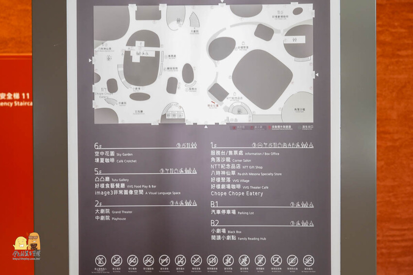 - 一樓-服務台/售票處/角落沙龍/紀念品店/八時神仙草/好樣聚落/好樣劇場咖啡