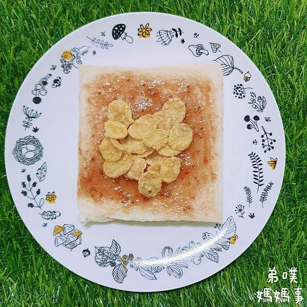 如果有多一點點時間只要吐司抹上果醬,加上「喜瑞爾香甜玉米脆片」就是好吃又有口感的好吃早餐、點心、宵夜