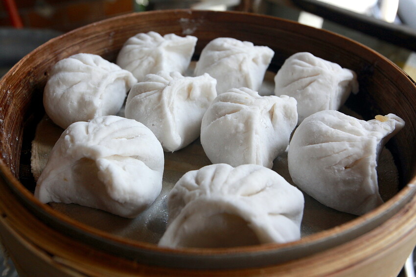 老舊木製攤位上面有堆放蒸籠,老實將這樣生產量是真的很少。