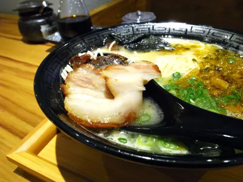 湯頭比台北大多數的拉麵店還要再濃郁許多,散出一股特殊的香氣,