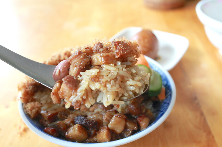 這米糕是使用長糯米來蒸煮,表面油油亮亮肉燥真討喜。