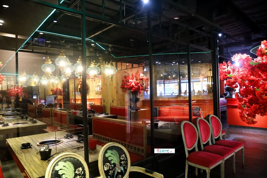 辛巴適麻辣鍋 台北1號店以華麗的宮廷風格為主調,黑紅對比的配色,巧妙地呈現質感,卻沒有壓迫感。