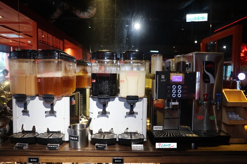 飲料區的冷飲備有奶茶、無糖綠茶、烏梅汁及可爾必思。另外有咖啡機,還有飲用水機可以沖泡熱茶。