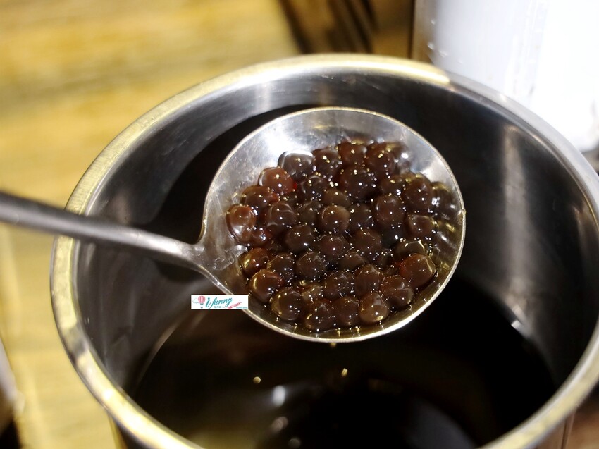 奶茶旁備有珍珠,可以自製成珍珠奶茶,這真的很在地化,台灣文化裡怎能少了珍珠奶茶呢?