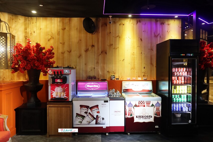 冰淇淋備了兩種品牌,其中是最知名的哈根達斯,另外是俄羅斯的皇家級冰淇淋卡比索,還備有霜淇淋機,吃完麻辣鍋後,來點冰涼的甜點,真是太爽快了!