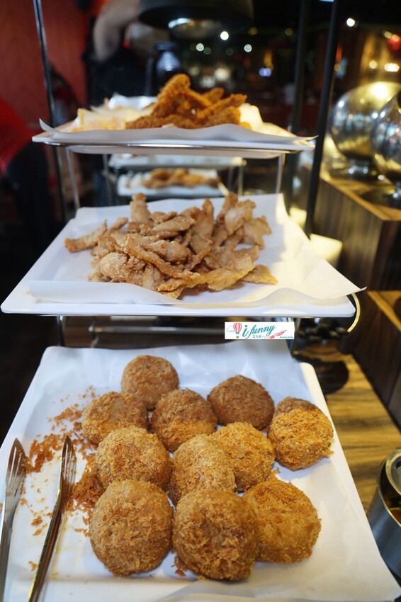 炸物區每天提供的品項不一定,這天的是炸蝦、炸魚條及咖哩可樂餅。