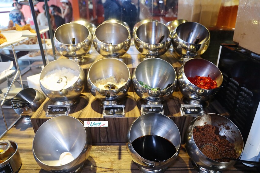 醬料區的容器,也完全符合宮廷風的設計,簡潔乾淨,還有免費取用的雞蛋喔!