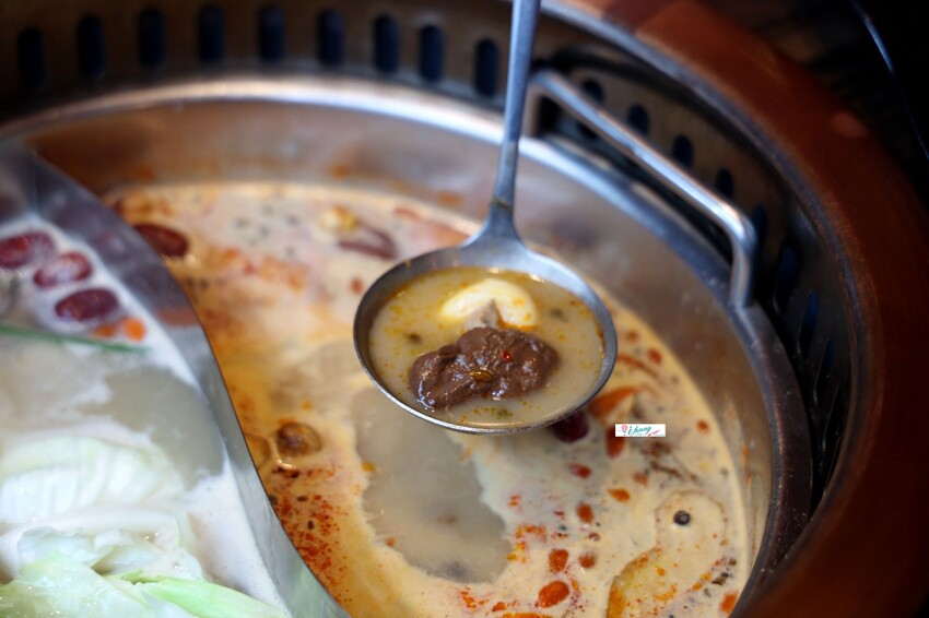 肉骨茶湯是採用大骨蔬菜以及中藥材熬製而成,南洋風肉骨茶湯底很濃郁,胡椒香氣十足,涮青菜或海鮮都很適合。