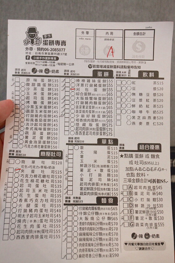 小高有選擇障礙看很久才畫選刈包蛋餅55元,還有這最簡單夾蛋土司25元。