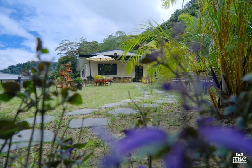 開車導航AS手作,來到南庄福德大橋時記得不要右轉,咖啡廳位置就在橋的正對面,入口在左手邊。綠色圍籬內有超大停車場,停好車再沿著斜坡的黑色樓梯往上走就會到囉!注意!只開放預約客入場,記得先預訂喔!