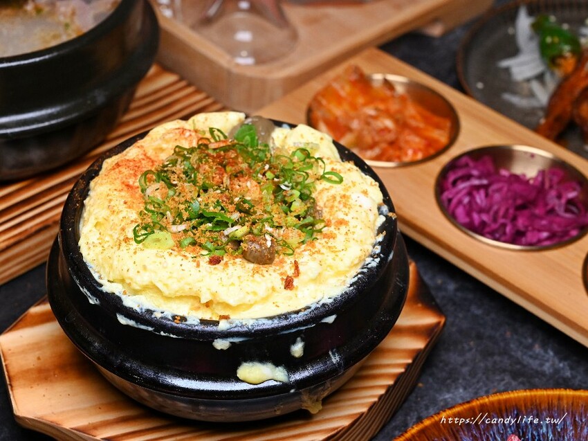 烘蛋也是糖糖每次吃韓式料理必點的餐點之一,知肉極緻韓燒肉的烘蛋也超浮誇,在軟綿的烘蛋裡加入了雪場蟹膏,上桌時再刨上烏魚子,看起來多麼奢華,是一道海味十足的烘蛋呢