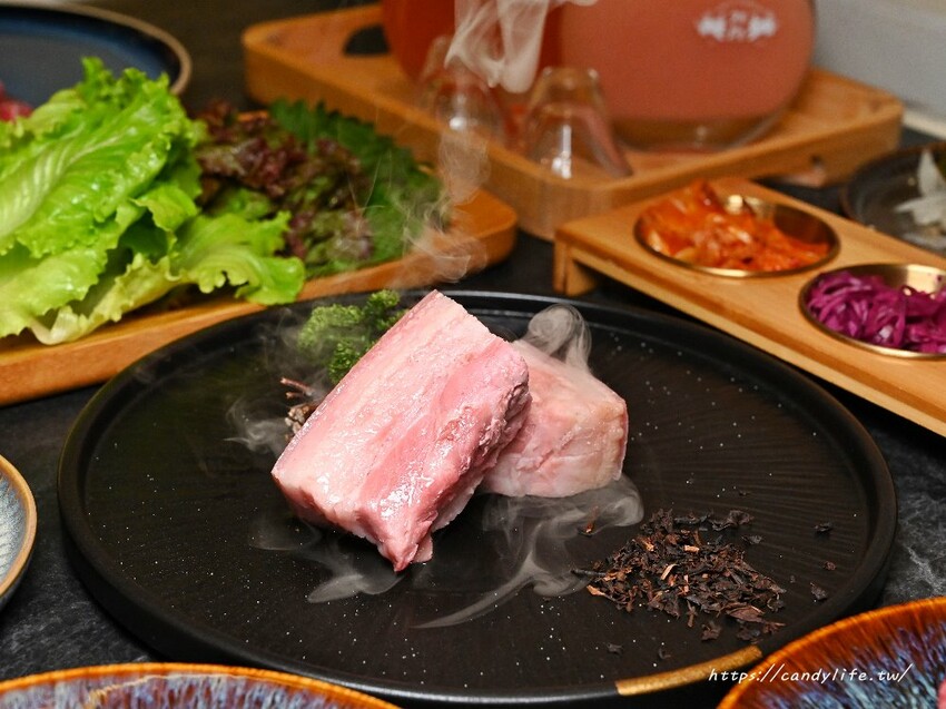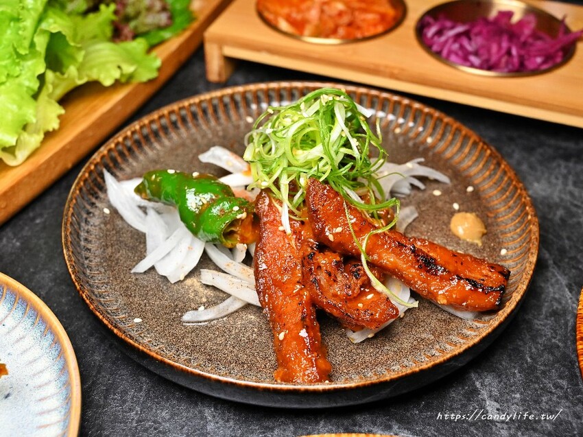來吃韓式燒肉,怎麼能錯過韓國最道地的烤豬五花肉呢,知肉極緻韓燒肉的豬五花肉相當厚實,帶皮下去烤,將油脂的部分烤的恰恰的,吃起來不會讓人覺得油膩,肉質紮實多汁,吃起來帶有迷人的煙薰香氣