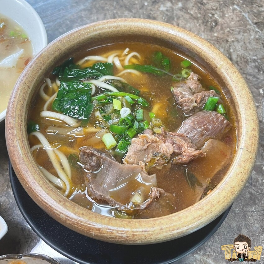 牛肉有嫩中帶嚼勁的口感,湯頭是偏鹹香的客家風味,搭配有麵勁的陽春麵。