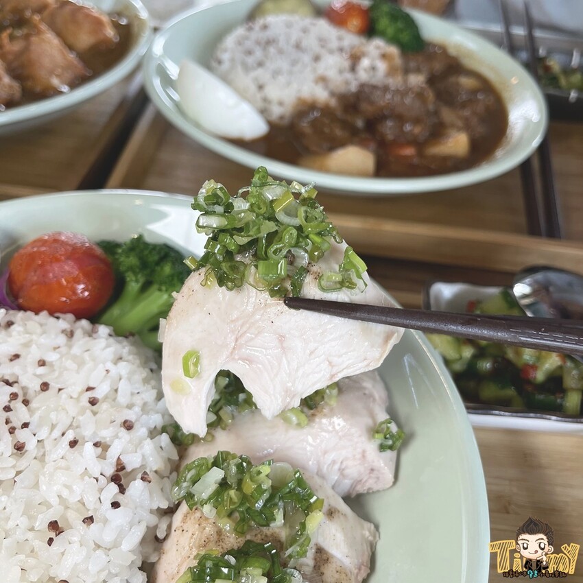 首先介紹主廚限定蔥油嫩雞飯(260元),口感很像舒肥雞,吃起來軟嫩不會乾柴喔!