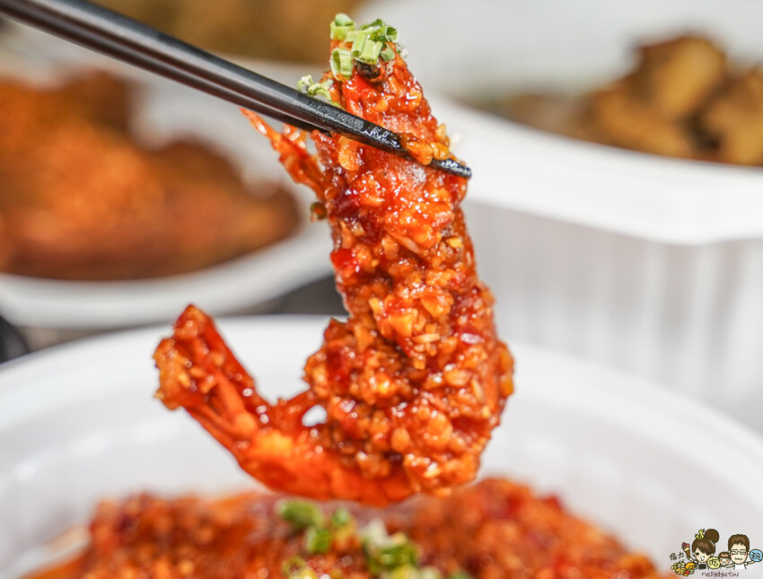 大人小孩吃到滿手都是沾醬,直呼過癮的鴻運乾燒大蝦