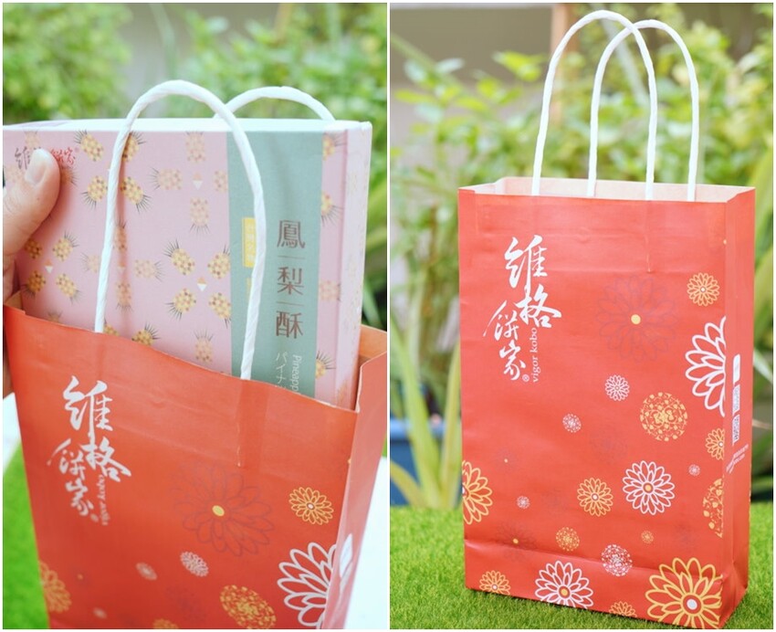 ▼首先來介紹鳳梨酥10入禮盒,粉嫩典雅的外盒上頭印有超多可愛的小鳳梨,搭配大紅提袋整個很喜氣,送禮也很大器好看!