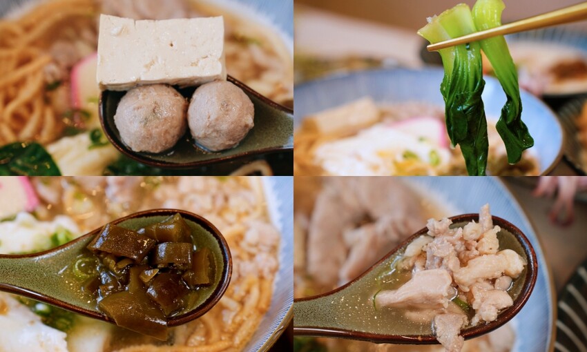 ▲剝皮辣椒雞肉麵裡的雞肉是雞肉丁,裡面的配料還有青菜、豆腐、丸子、雞蛋、肉片、魚板等配料!