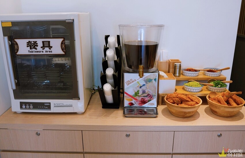 ▲店家採用自助式的服務,畫記餐點後需至櫃台點餐及結帳,在自行到自助區取用餐具、飲品及醬料,用完餐以後再將餐具放置回收處!