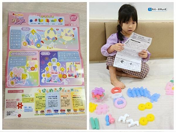 在小小魚玩耍的過程中,我都盡量扮演陪伴的角色,在她卡關時再給予一些引導-所謂引導不是直接告訴她可以怎麼做,而是給她一些提示與選擇,讓她思考、實驗與確認,包括在參考說明書製作馬車與城堡時,我讓她自己按照清單整理出所需素材,再看圖片研究如何拚出一樣的組合,藉由一連串的試錯才終於完成。
