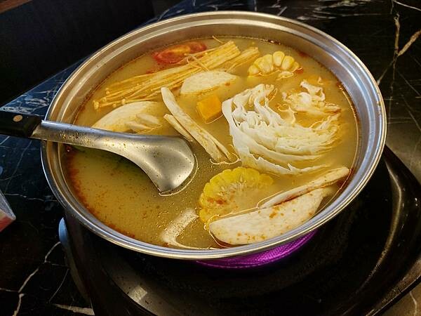 火鍋湯頭是南洋風味帶點酸,有加香茅
