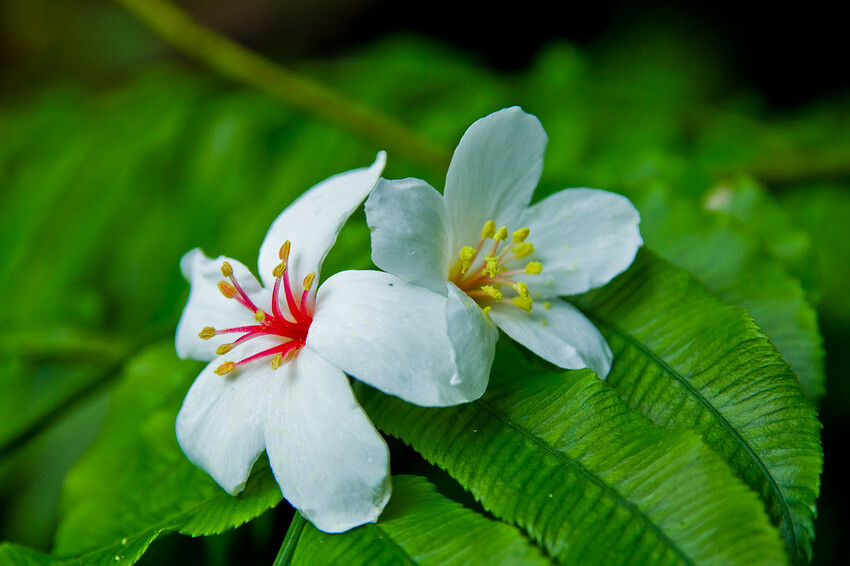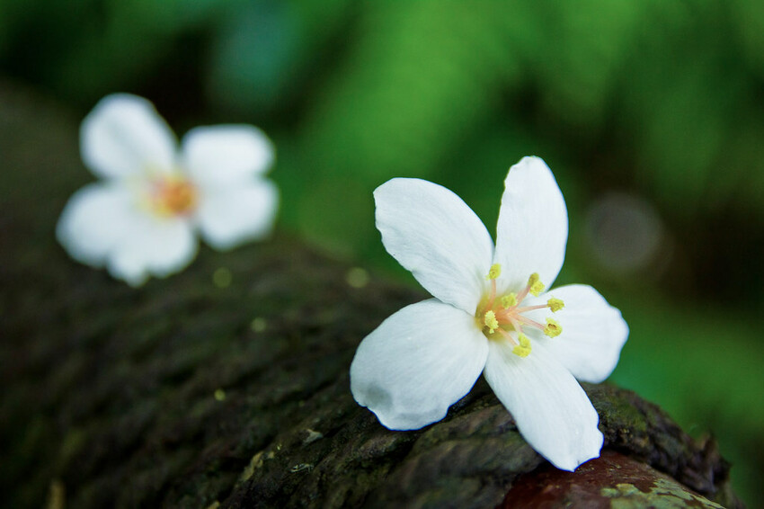 油桐花剛開時為白色,花心淡綠色,花心逐漸轉身而為紅褐色