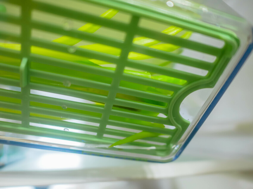 在保鮮盒的下方有墊片設計,可以方便將洗好的食材瀝乾淨