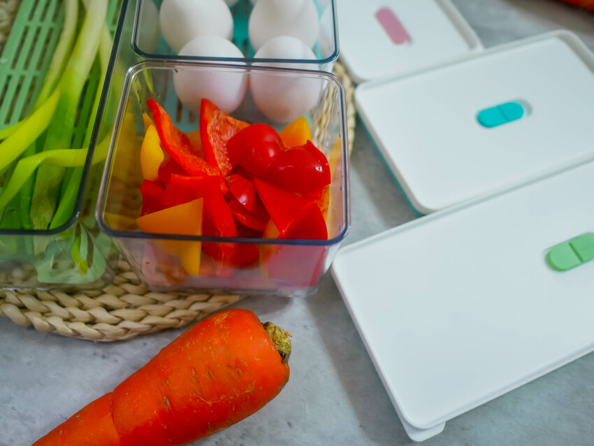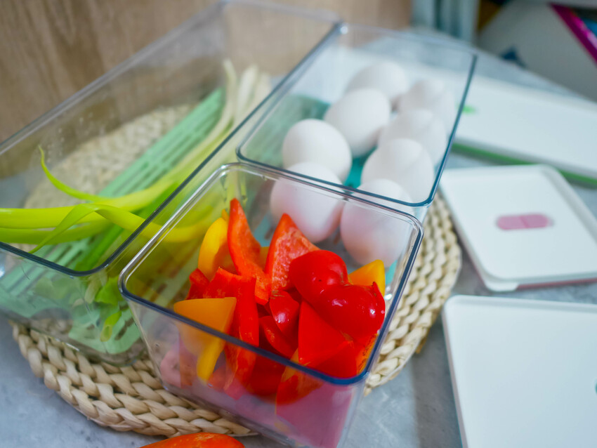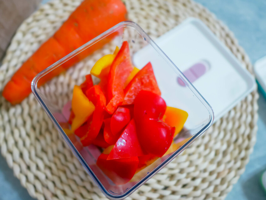 將切好的食材放進保鮮盒中,保持食物新鮮