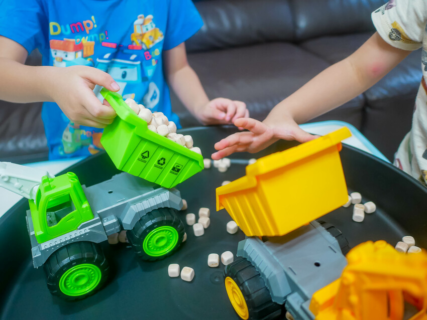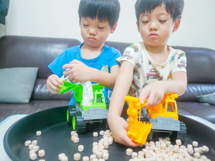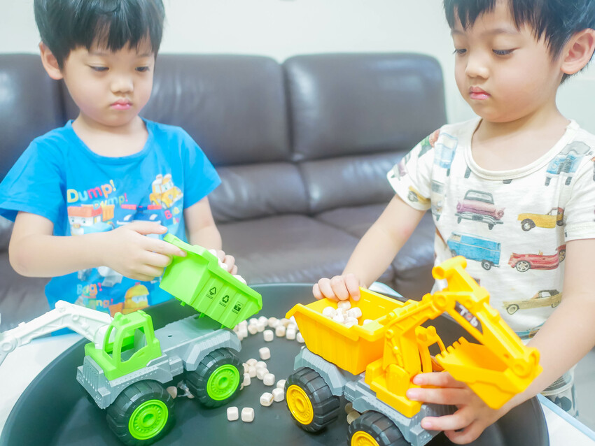 另外也可以拿出小男孩最愛的小砂石車,載起小立方木兒開心玩耍