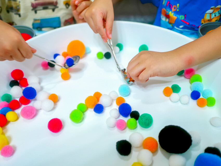 澎澎毛球顏色繽紛,可以和孩子玩小遊戲